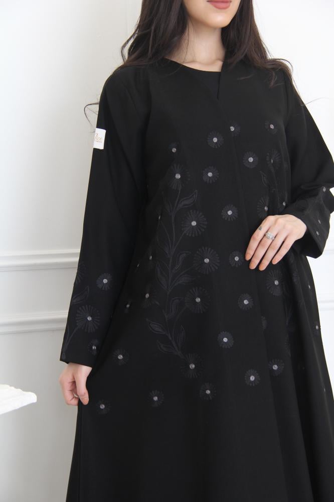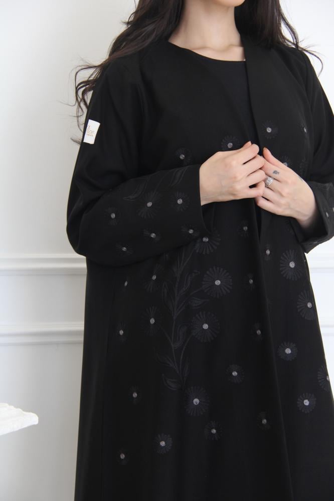 عباية بقماش لمار تطريز يدوي اسود و رمادي