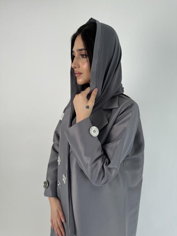 عباية بليزر لون رصاصي بقماش تفته تايواني مبطن من الداخل